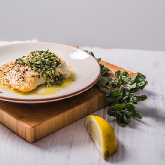 6 - Place the fish in the oven and cook for 18-20 minutes until cooked and the herb crust is crisp.